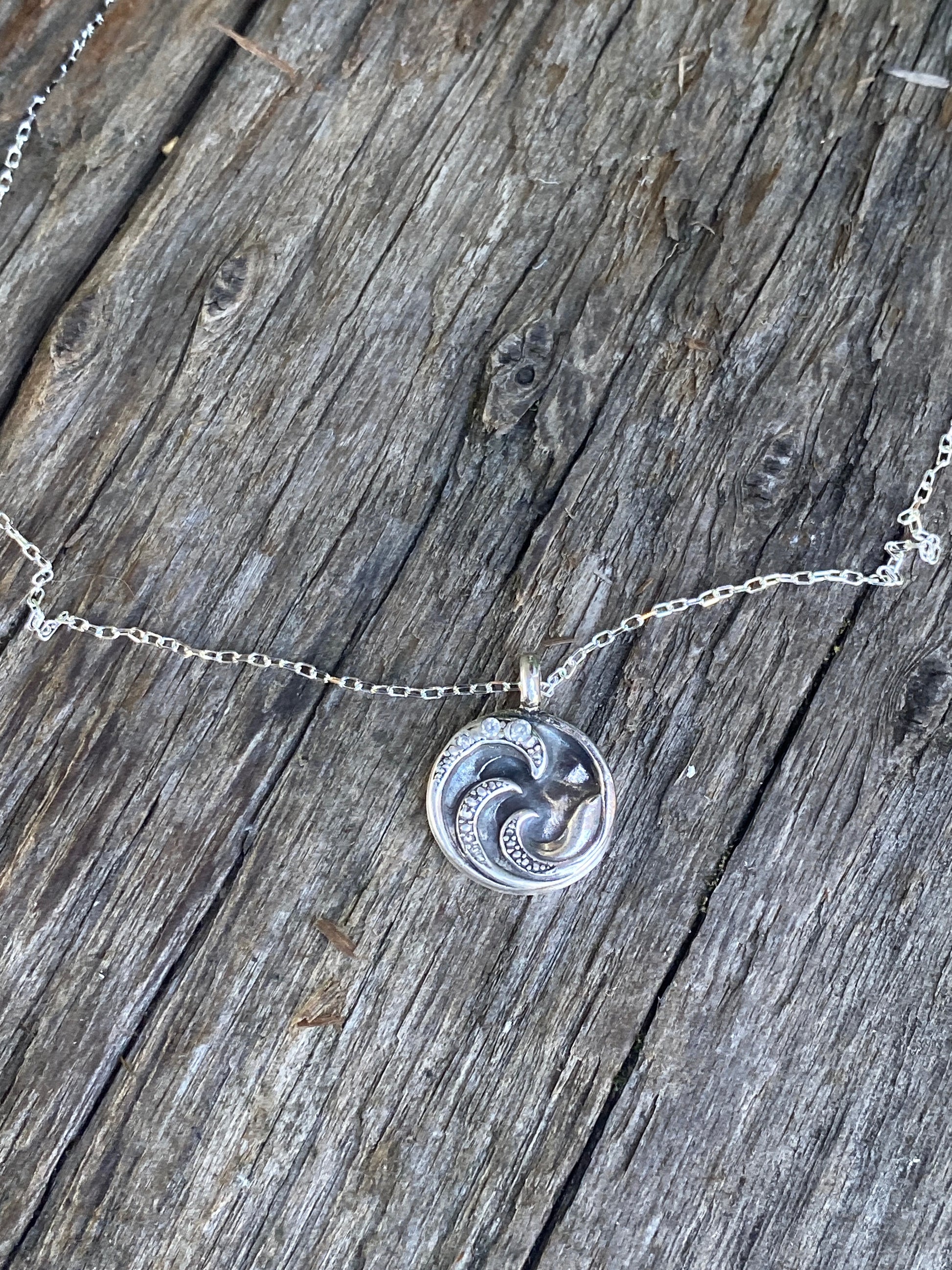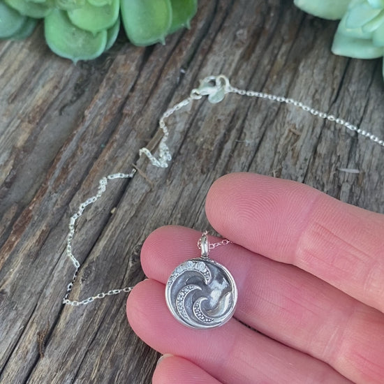 Our “Catch The Wave” pendant captures the essence of Hawaiian waves.