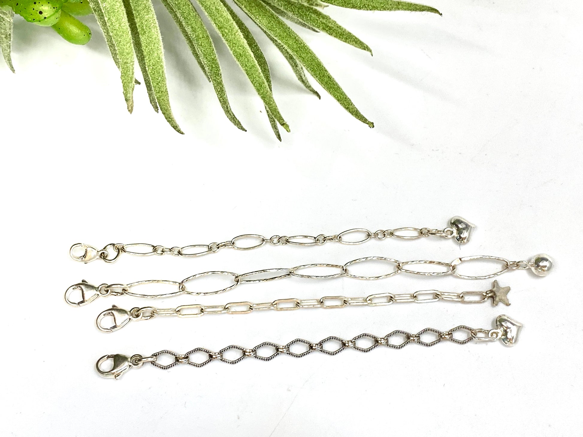 Extensions. From ladders to cords to even hair – they’re just what you need to get the job done. Works with any necklace, one you pick from us, or one you already have. These are approximately 2 inch extensions with a clasp on one end, a chain in the middle and a darling little charm on the end. Comes in Sterling Silver or 14k gold. Makes any necklace adjustable up to 2" longer.