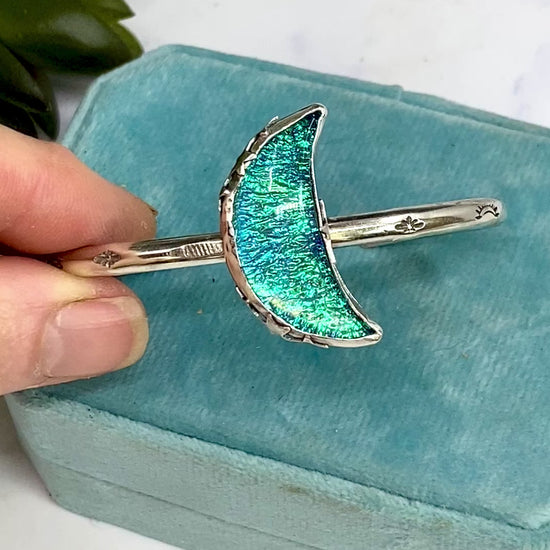 Opalite Moon Galaxy Cuff Bracelet - Sterling Silver Moon Bracelet