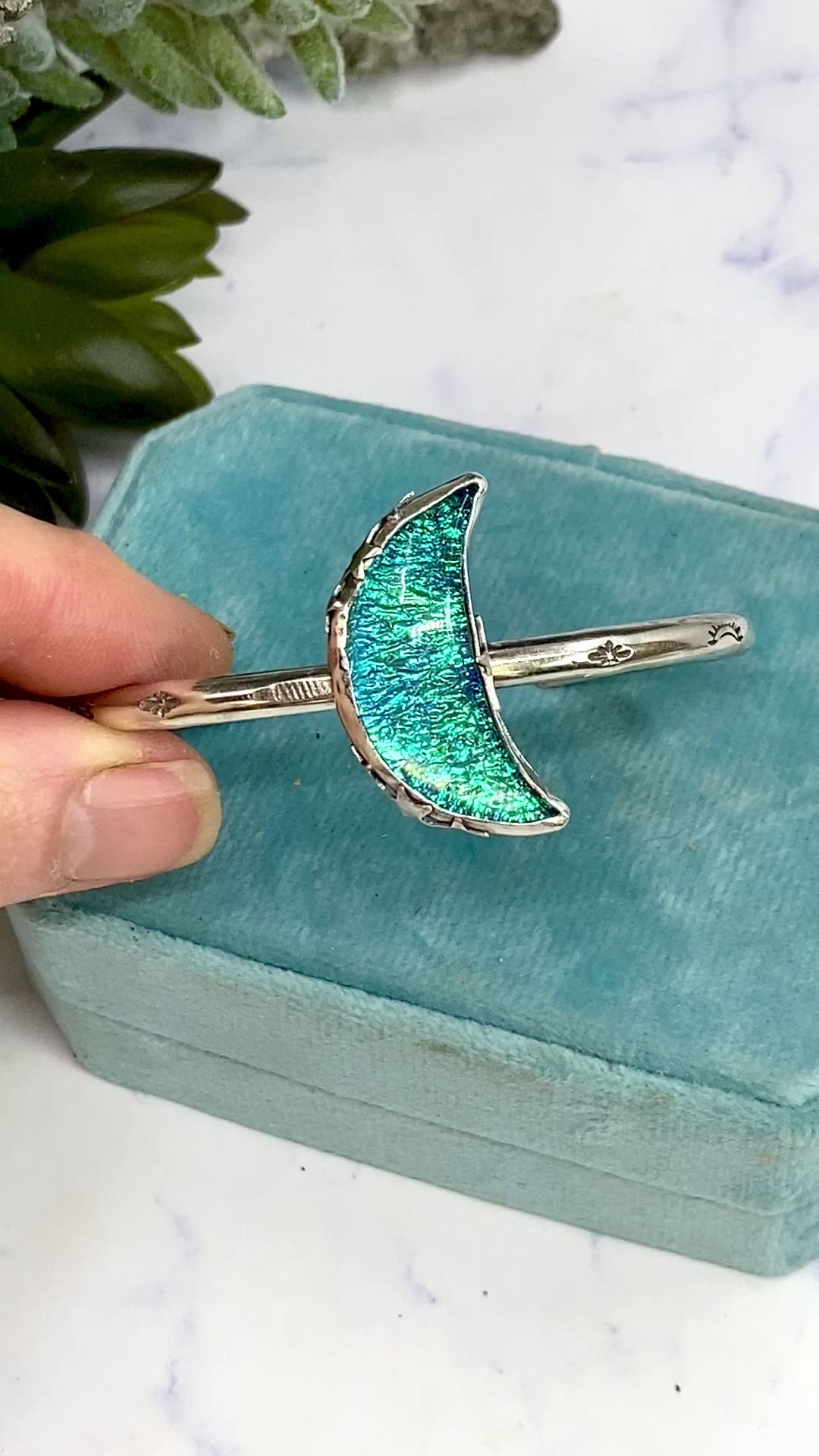 But my favorite part of this galaxy cuff bracelet is the moon cut Opalite and all of its amazing shimmer. It just glistens green, blue, teal, and even a little lavender hues too.