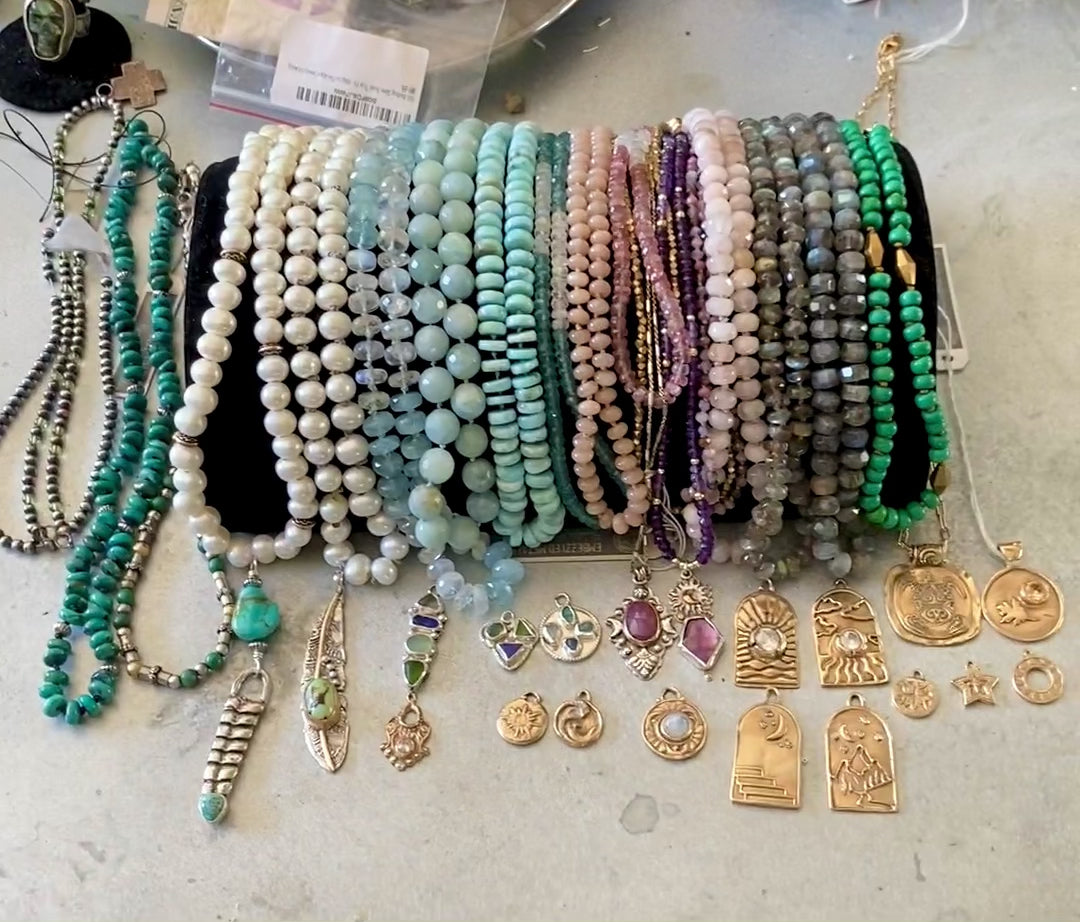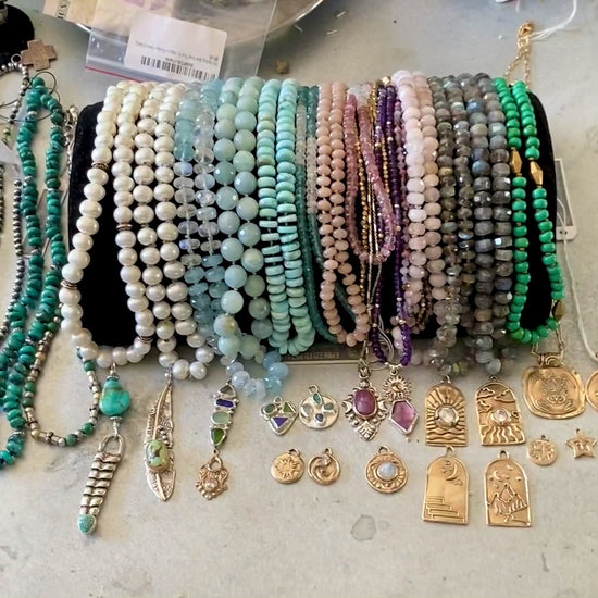 Gemstone candy jewelry (or gemstone hand knotted Jewelry) should be kept away from harsh chemicals and should not be worn swimming or in the shower. Candy jewelry should be treated with some care and not pulled on or worn during high intensity activity. The string will stretch over time and discolor from oils and moisture. Taking good care of your handmade gemstone candy jewelry will help it maintain its natural beauty for a long time.