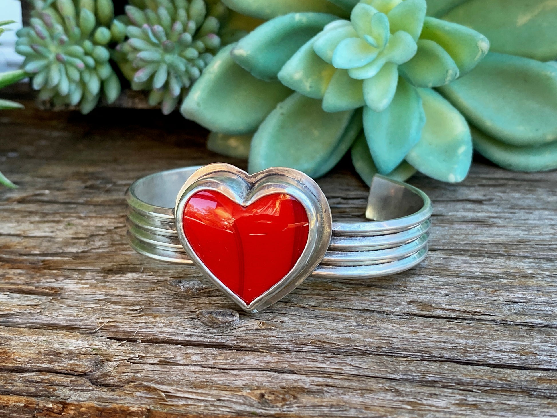 Rosarita is unusual and uncommon; there will be no more due to changes in the gold refining processes after the 1970's. This heart cuff bracelet is unusual and beautiful. It is a slightly adjustable cuff bracelet.