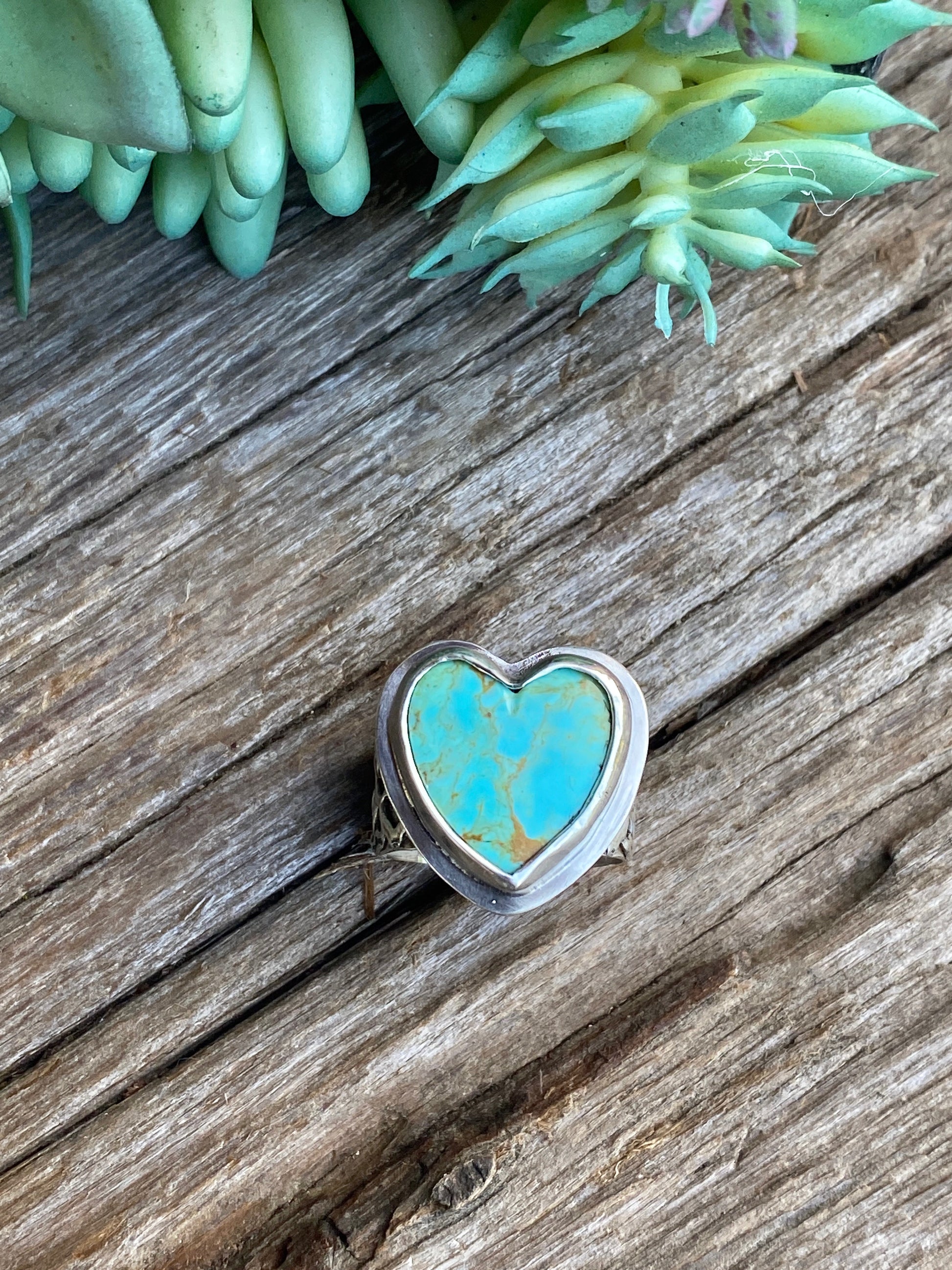 Sterling Silver And Kingman Turquosie Heart Ring - My Beating Heart Ring