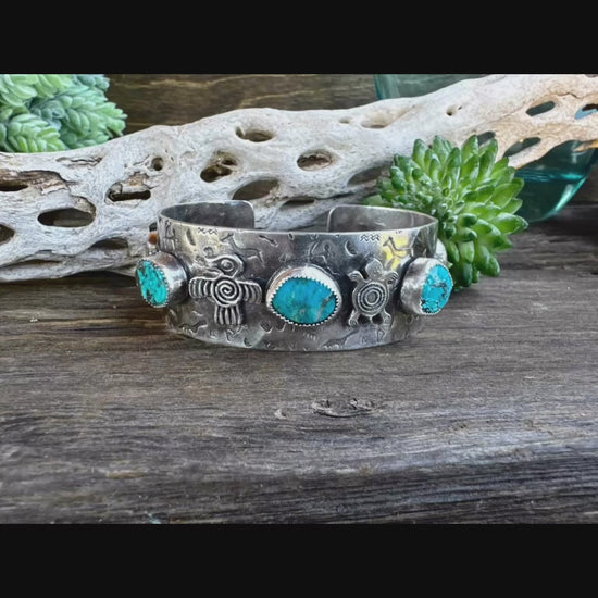 Kingman Turquoise 5 Stone Petroglyph Cuff